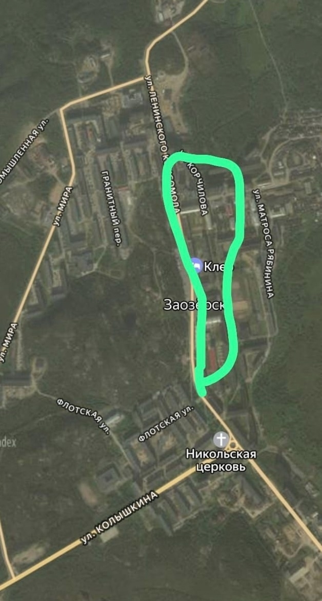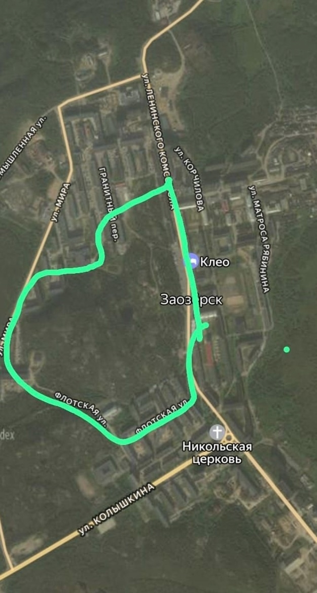 2 маршрут (протяженность маршрута 5 км): от площадки у световой стелы с названиями Заозерска (напротив ул. Ленинского Комсомола, д. 16) – ул. Флотская, д. 2 - ул. Флотская, д.14 – ул. Флотская, д.20 – ул. Мира, д.19 – ул. Мира, д.9 – ул. Мира, д.5а – пер. Молодежный, д.6 – пер. Гранитный, д.4 – ул. Ленинского Комсомола, д.5 - площадка у световой стелы с названиями Заозерска (напротив ул. Ленинского Комсомола, д. 16).