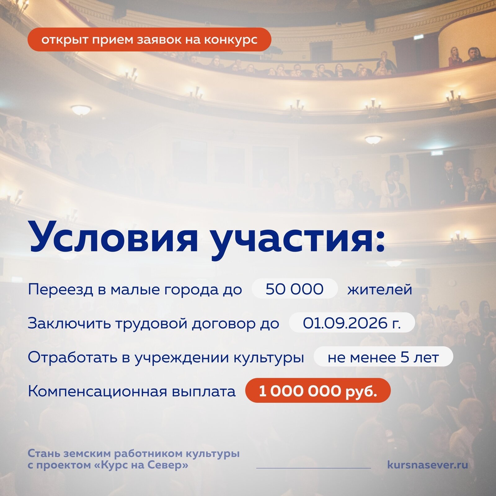 Продолжается приём заявок на программу «Земский работник культуры» — возможность получить единовременную выплату 1 000 000 рублей и реализовывать творческие идеи в малых городах и сёлах.